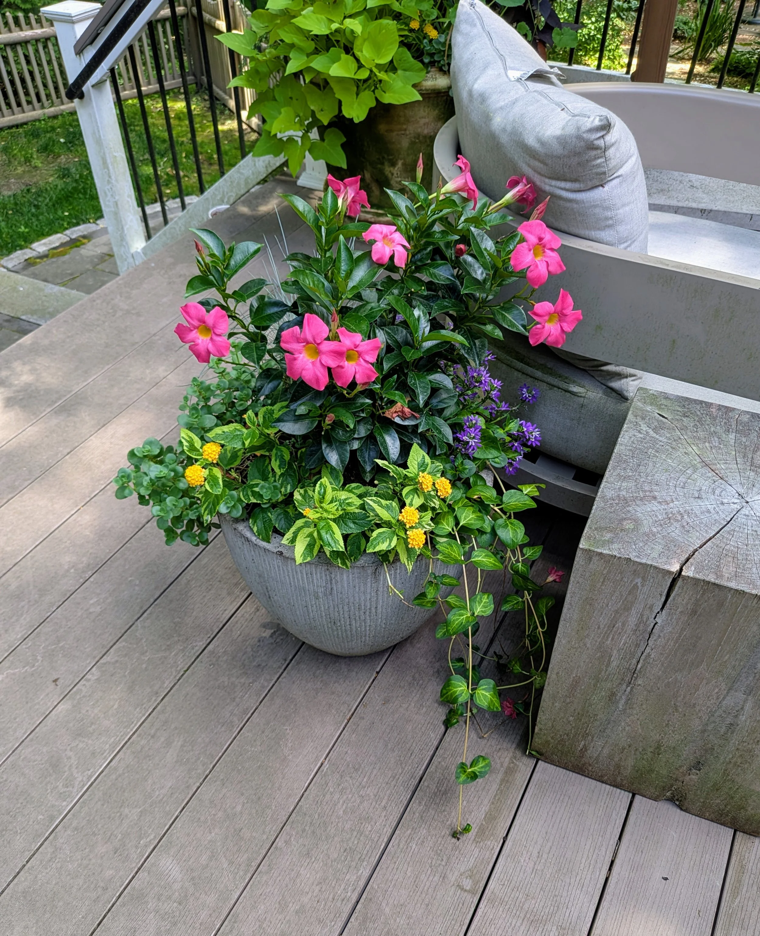 We design and install custom container plantings for spring, summer, fall, and winter, thoughtfully curated to complement your home’s aesthetic. These arrangements add welcoming color and visual interest to entryways, along walkways, around pool areas, and within patios or entertaining spaces — creating an inviting, polished look in every season.